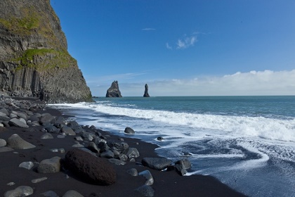 【維克黑沙灘】由海水搬運(yùn)積聚的火山巖碎屑形成,顏色是天然玄黑色,但海水未受影響,依然清澈親切。