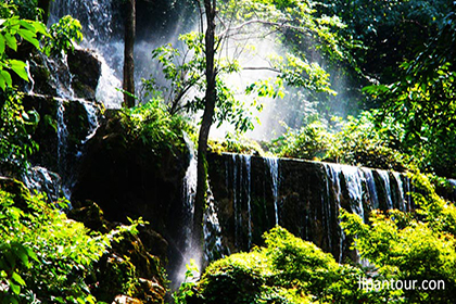 早乘車赴大新德天,沿途欣賞“百里畫廊”的公路景觀。抵碩龍后往靖西游覽“地球裂縫”——通靈大峽谷【約2.5H】——通靈大峽谷位于靖西縣城東南部32公里的湖潤(rùn)鎮(zhèn)新靈村,古龍山水源林自然保護(hù)區(qū)的南端,長(zhǎng)約1000米寬200多米,深300米。由念八峽、銅靈霞、古勞峽、新靈峽、新橋峽組成,總長(zhǎng)10多公里。念八河從古龍山脈緩蜒而下,依次穿越五個(gè)峽谷,流入湖潤(rùn)臺(tái)地。每個(gè)峽谷內(nèi)薈萃了舉世罕見的特高瀑布群、洞中瀑布、地下暗河、峽谷溪流、洞、古懸葬、原始植被等自然景觀與人文景觀。這里薈萃了兩千多種植物,有出現(xiàn)在侏羅紀(jì)時(shí)代(距今一億八千萬年)與恐龍同時(shí)生長(zhǎng)的桫欏、觀音蓮子座蕨類植物等珍稀植物。